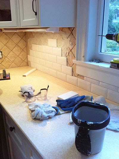 While removing the pedestal sink, we discovered some old wallpaper ~ thank goodness the previous owners had already removed it...